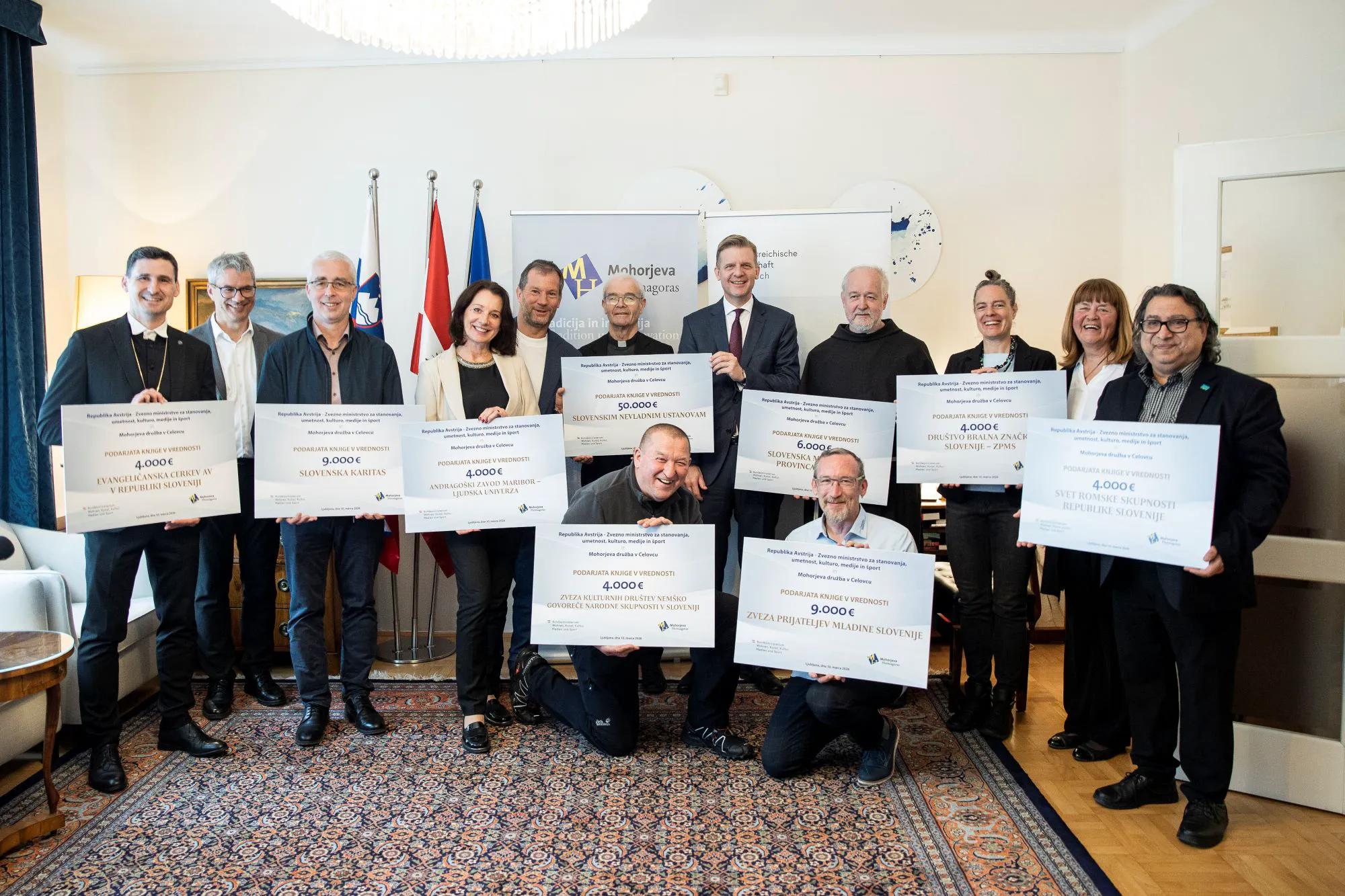 Avstrijski veleposlanik v Sloveniji, dr. Konrad Bühler, in predsednik Mohorjeve družbe v Celovcu, msgr. Ivan Olip, sta skupaj simbolično izročila knjige v skupni vrednosti 50.000 € devetim socialnim, karitativnim, kulturnim in cerkvenim organizacijam v Sloveniji.
